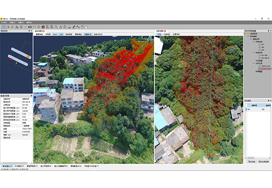 基于單張影像獲取導線點真三維坐標,一鍵生成導線;導線與實景三維模型樹障進行分析,場景高亮顯示預警;一鍵式自動生成巡檢報告;點云自動分類,自動提取電力線,分類精度高達90%。